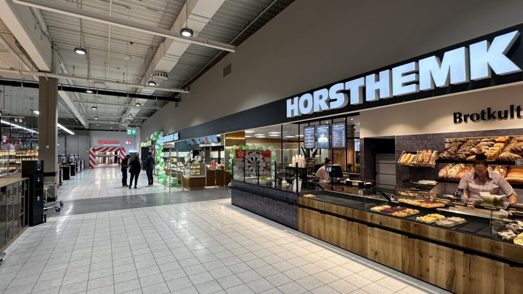 Marktmodernisierung, Teilabbruch und Neuerrichtung Eingangsbereich und Konzessionärszone. Neubau Fachmärkte, Neugestaltung Außenanlagen